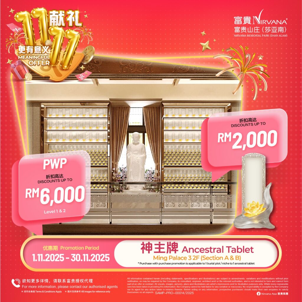 The memorial park focuses on celebrating ancient traditional Chinese culture. It is one of its kind with Heritage Courts, Tang Villas, and Ming Palaces, which feature multiple conventional Chinese architectural styles. One of the most noteworthy aspects of Nirvana Memorial Park (Shah Alam) is that it is highly equipped with beautifully landscaped gardens that are perfectly unique. They complement the highly organized thematic burial sites that are similar to Nirvana Asia.
